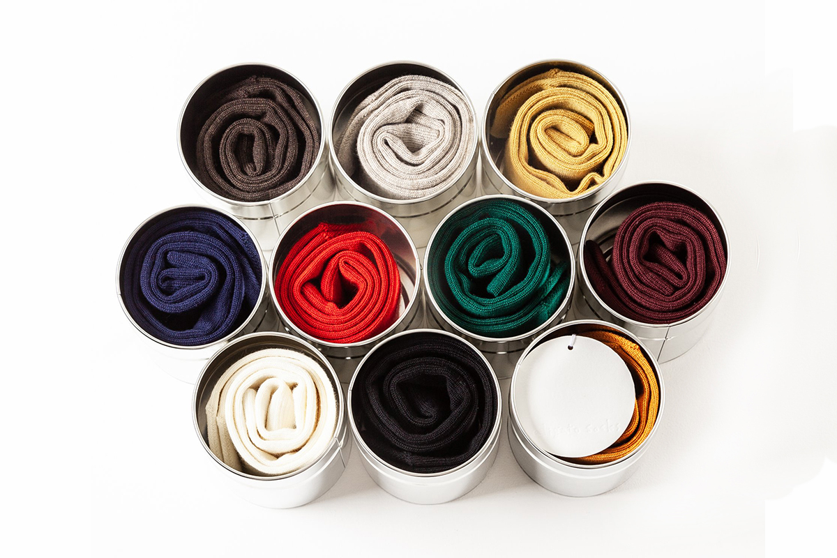 It is a logo design work for a Japanese socks brand “aligatos”. Their socks don’t have heels and patterns but only colours. They are suitable for the coming future, by being sizeless, genderless, ageless. During world war two - there weren’t many resources, these heel-less socks were widely used. It helps socks to produce less waste. The brand name comes from “Thank you” in Japanese. It’s perfect for a gift since sewed letters “Thank you” show up when you turn it over. Don’t worry - they use a recyclable steel can for wrapping.
